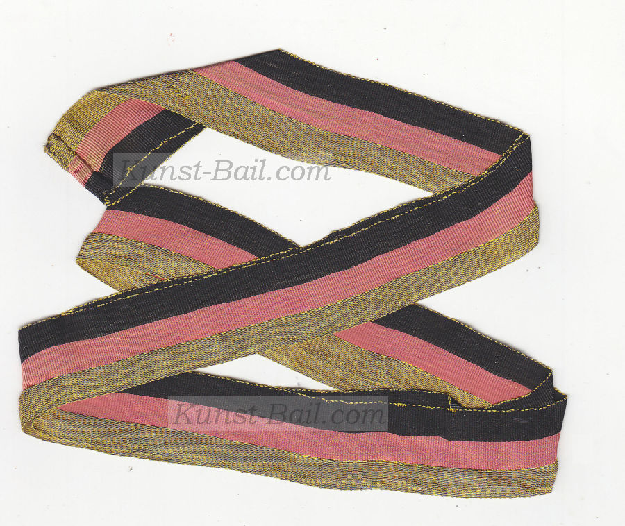 Akademische Legion 1848 – Couleurband. Notiz auf beigelegtem Zettel: ….(unleserlich) band, getragen von mir als Mitglied der academischen Legion in Wien, in den Monaten April, Mai, Juni 1848. Rückseitig ergänzt der Name des Trägers.