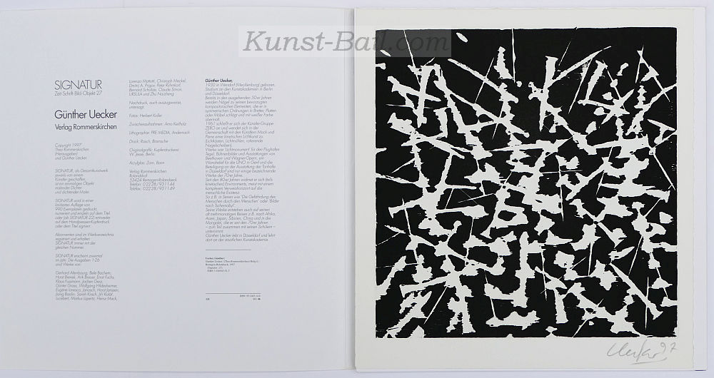 Günther Uecker, Signatur 25, Künstlerbuch, nummeriert, mit signierter Aquatinta-Radierung („Stigma“), 1997